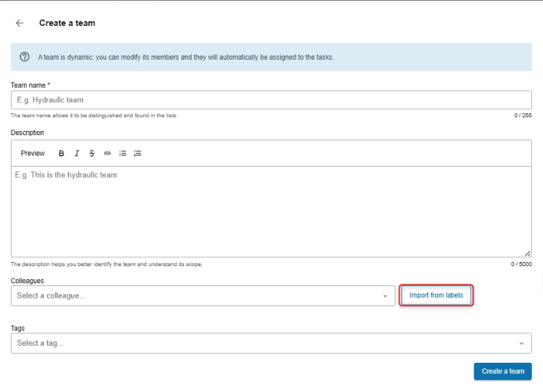 - Tags (optional): help clarify the team’s scope.