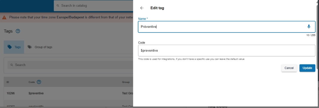 Once the modification is validated, all entities linked to the tag (tasks, equipment, users, checklists) are automatically updated, including intervention history.