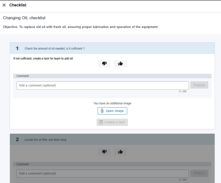 Some tasks include a checklist. When one is present, the checklist ensures that all essential steps are followed, reducing the risk of missing items and improving the quality of operations.