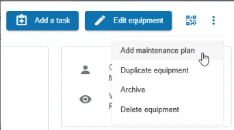 A maintenance plan can be created from the maintenance plans search page or directly from the equipment for which you wish to create the plan.
