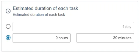The estimated duration of tasks can be set in days, hours, or minutes.