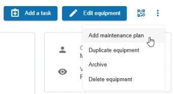 A maintenance plan can be created from the maintenance plans search page or directly from the equipment for which you wish to create the plan.