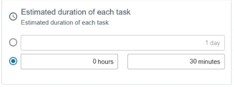 The estimated duration of tasks can be set in days, hours, or minutes.
