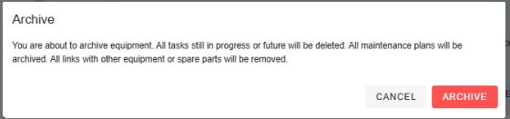- Archiving a piece of equipment removes it from active use while keeping its history.