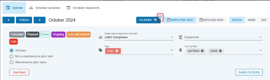 If you do not click Save filters, the changes will not be saved.