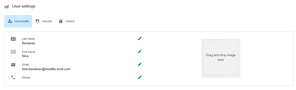 In the User profile tab, you can update: