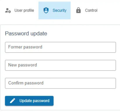 To update your password, select your username in the top bar of the app, then click on Preferences and then Security. You will be redirected to the password change interface.