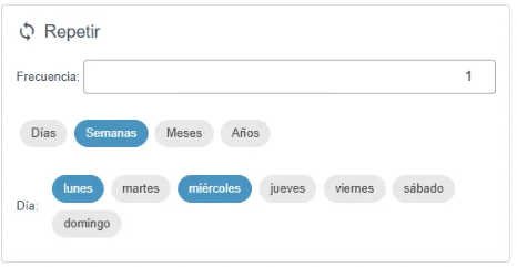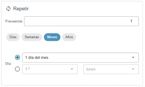 Puede elegir la frecuencia en X días, semanas, meses o años.