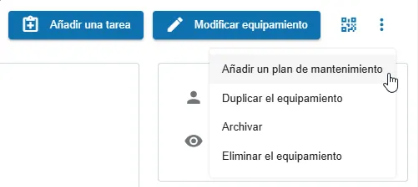 Un plan de mantenimiento puede ser creado desde la página de búsqueda de planes de mantenimiento o directamente desde el equipo para el que desea crear el plan.
