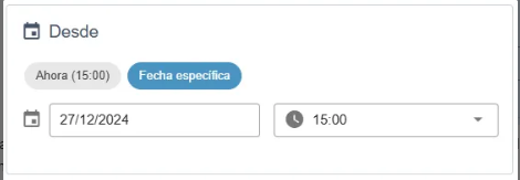La aplicación le ofrece por defecto la fecha y hora actual, pero puede elegir otra fecha y hora en el futuro.