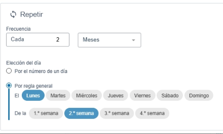 - o por una regla (por ejemplo: lunes de la 2.ª semana del mes).