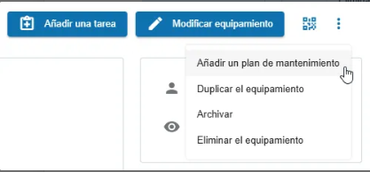 Un plan de mantenimiento puede ser creado desde la página de búsqueda de planes de mantenimiento o directamente desde el equipo para el que desea crear el plan.