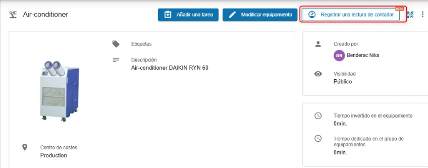 ⚠️ Si un plan de mantenimiento basado en contadores está configurado para utilizar las lecturas registradas desde un equipo, es imprescindible seleccionar el mismo equipo y contador en el plan de mantenimiento para que las tareas se generen correctamente.