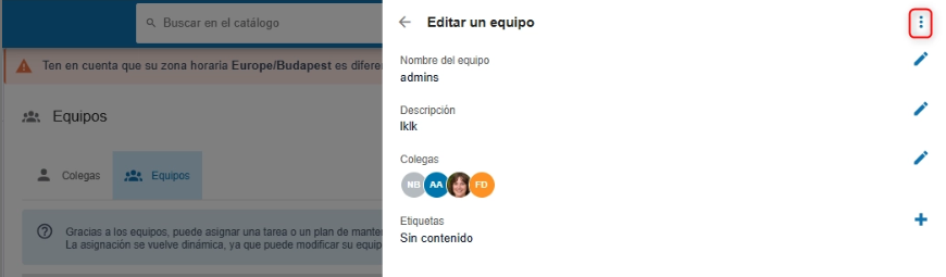 - Abra la ventana modal del equipo que desea eliminar.