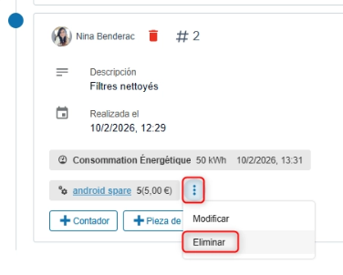 - En la actividad correspondiente, haga clic en el botón ⋮ (tres puntos) y seleccione Eliminar.
