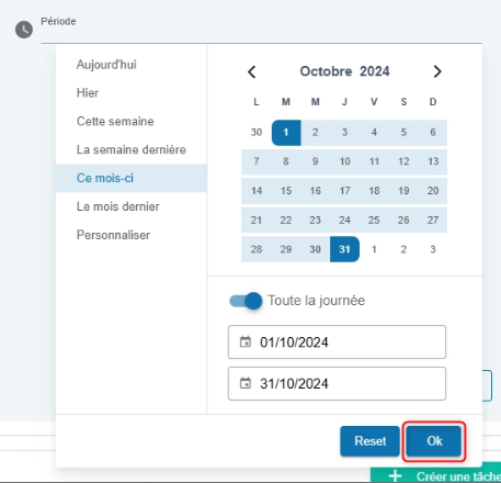 Après avoir sélectionné la période souhaitée, cliquez sur OK pour confirmer.