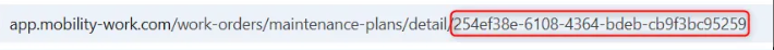 La création d'un plan de maintenance via l'API suit le même processus que pour les plans à date fixe ou à clôture de tâche. Vous utilisez l'interface habituelle pour créer votre plan de maintenance, mais au lieu de spécifier une date ou un événement de clôture pour déclencher la tâche, vous envoyez simplement l'ID du plan de maintenance via l'API. L’ID est à la fin de l’URL de la page du plan en question.