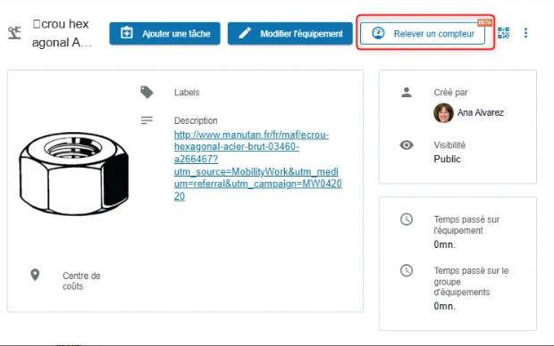 ⚠️ Si un plan de maintenance déclenché par un compteur est configuré pour se baser sur les relevés effectués depuis un équipement, il est essentiel que le même équipement et compteur soit sélectionné dans le plan de maintenance afin que les tâches soient correctement générées.