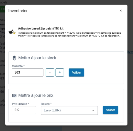 - Pour mettre à jour le prix ou la devise d’une pièce.
