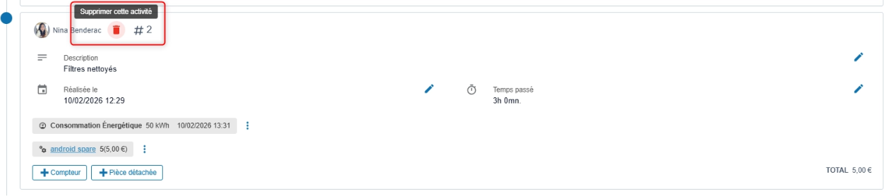 Cliquer sur le bouton Supprimer disponible dans l’activité concernée.