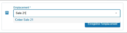 - Si aucun résultat ne correspond à votre saisie, le menu déroulant propose l’option Créer l’emplacement saisi.