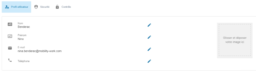 Dans l’onglet Profil utilisateur, vous pouvez mettre à jour :